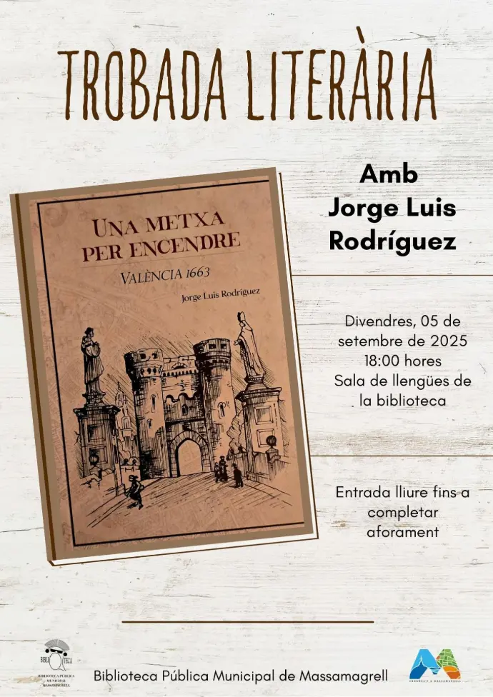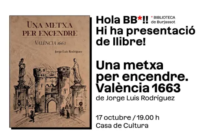 Presentació de la novel·la "Una metxa per encendre. València 1663", per començar el nou curs cultural (Cartell d'Aurora i notícies a les xarxes socials de la biblioteca, instagram i facebook). Publicació de la trobada per la biblioteca.