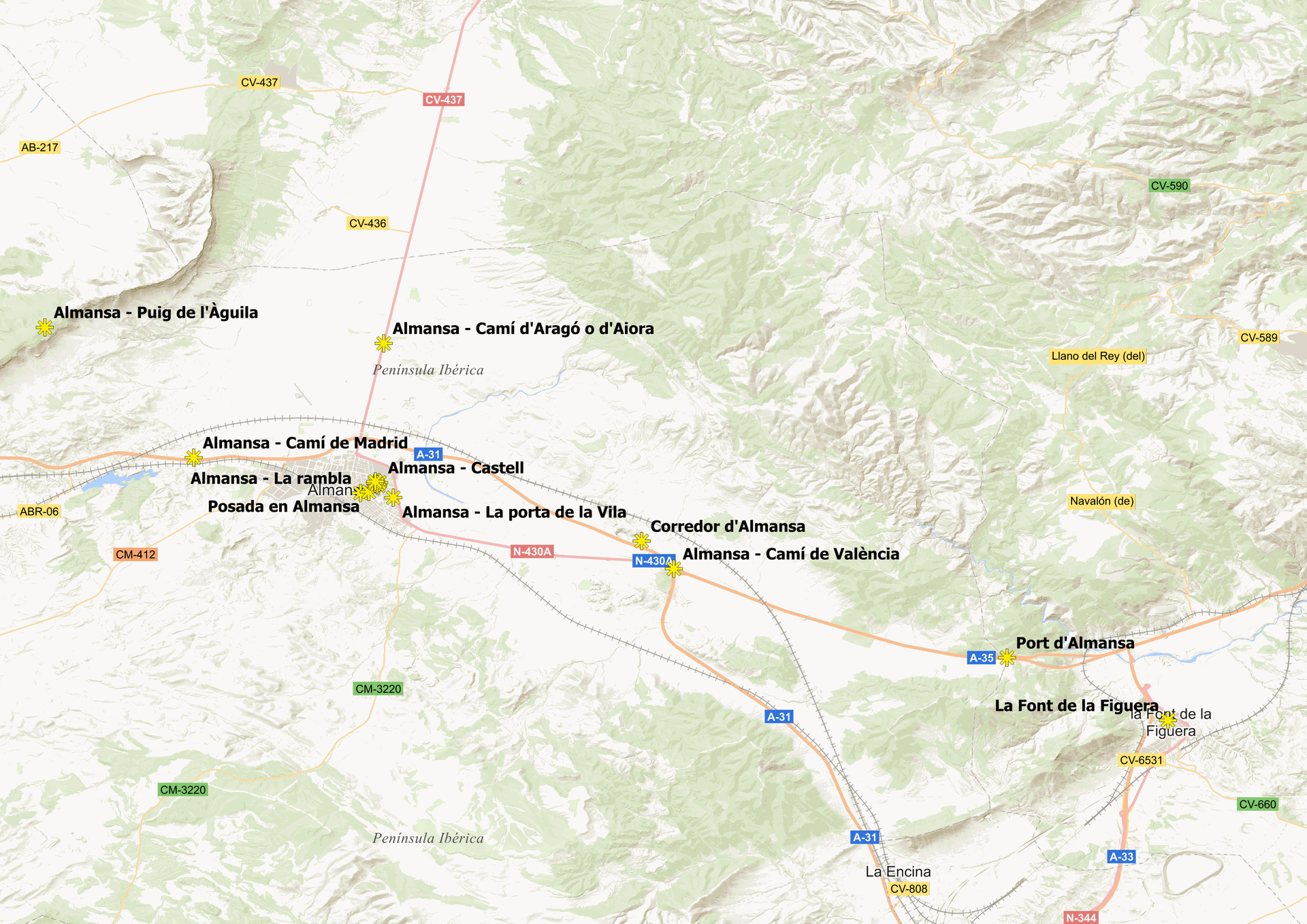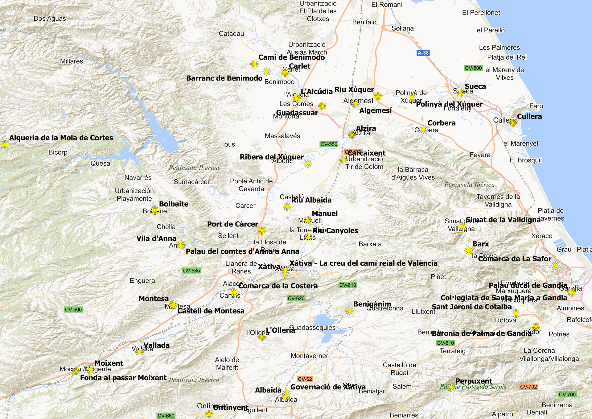 Mapes dels llocs on discorre l'acció d'Una metxa per encendre